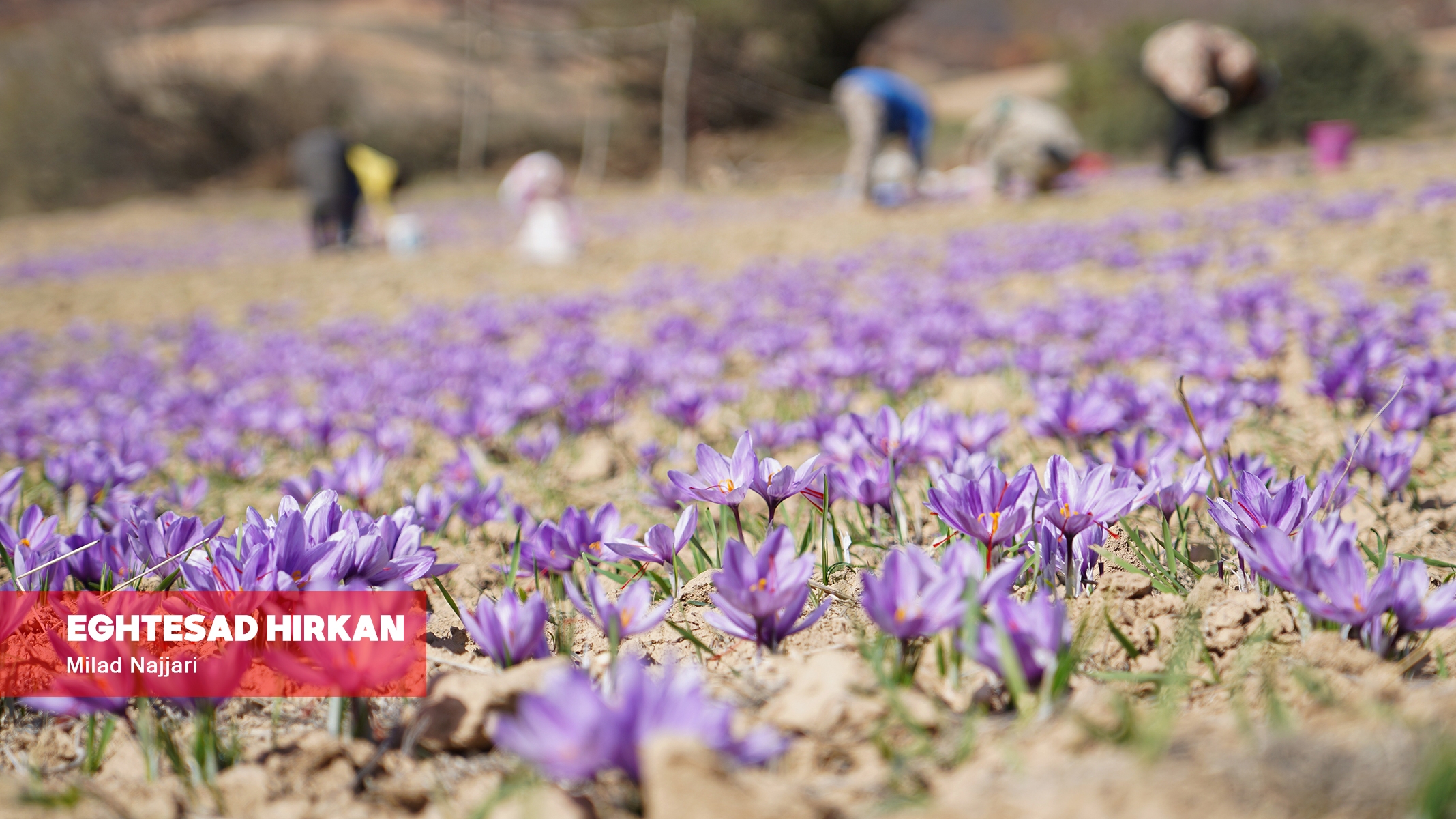 برداشت زعفران با دستان زحمت کش اهالی روستای وامنان آزادشهر